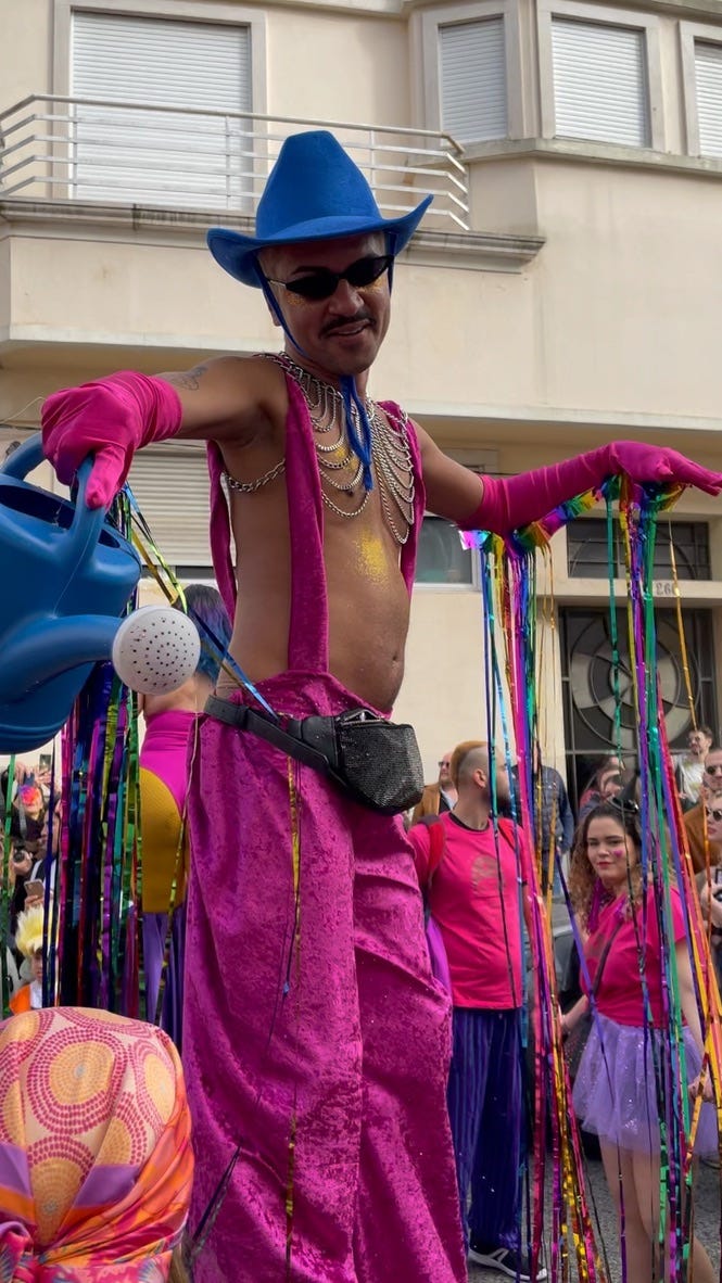 We set out to see the start of the festival on a quiet street and thoughts we would hear music bouncing between the windows. But as soon as we turned the corner, ceremonious chanting and singing shook the streets. A mid-afternoon delight to see. Drums were banging in unison around a group of sparky spring neon dancers on stilts. One tall sparkly rainbow cowboy hat-wearing gentleman was standing nearly a whole story higher and was stilting around decorating the crowd with his watering can of glitter. Like a real-life flowing rainbow GIF.